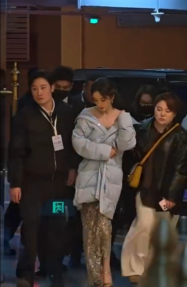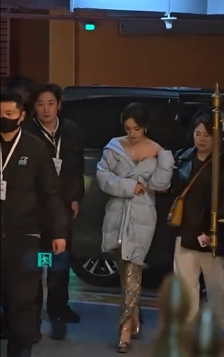 > mg平台 杨幂出席上海活动, 穿抹胸礼服, 披羽绒服露香肩, 惊艳全场