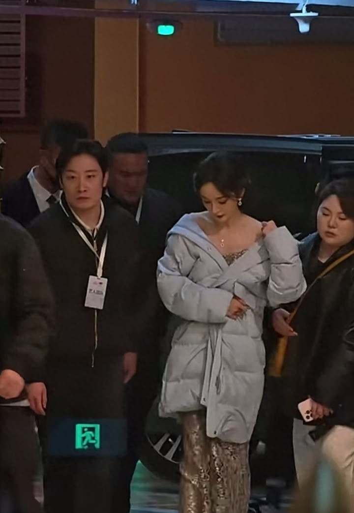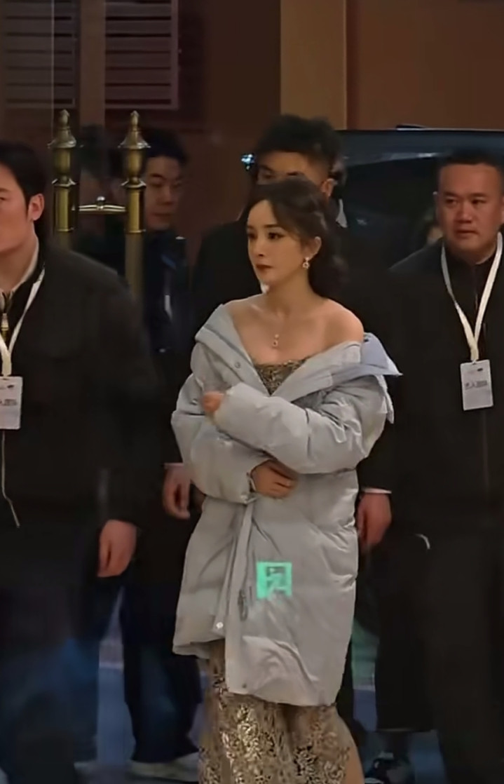 mg平台 杨幂出席上海活动, 穿抹胸礼服, 披羽绒服露香肩, 惊艳全场