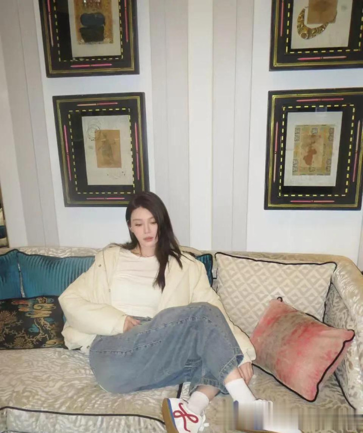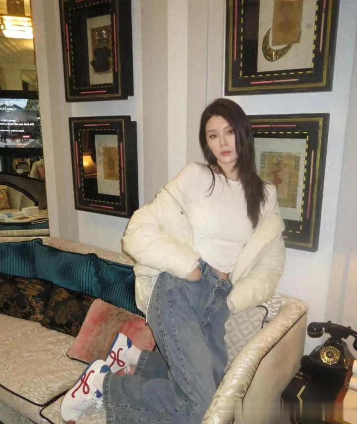 > mg平台 奚梦瑶私服造型真时髦! 短羽绒服+白T+牛仔裤, 减龄又高级!