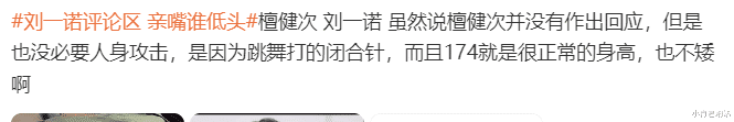 多的是看热闹,不嫌事大的,也有粉丝回应,没必要人身攻击,是因为跳舞打了闭合针,而且174也是很正常的身高,也不矮。