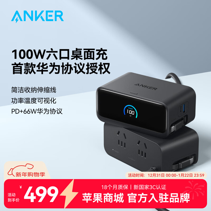 IT之家 1 月 19 日消息,安克现已在京东上架一款“100W 桌面充 Mix”桌充产品,该机提供 3C+1A+2AC 规格,同时支持华为 66W 协议,定价为 499 元,首发价 474 元。