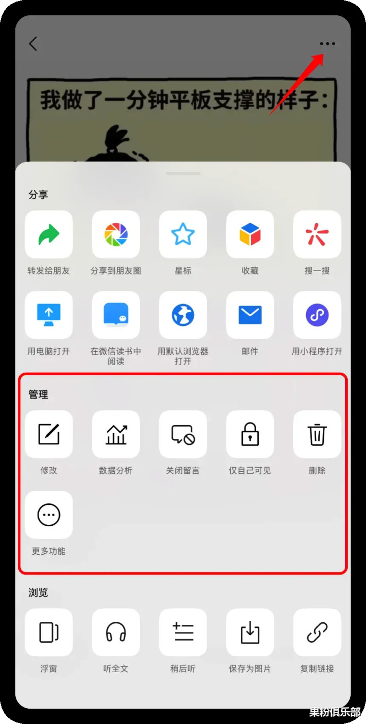 具体选项包括修改、数据分析、关闭留言、仅自己可见、删除和更多功能。
