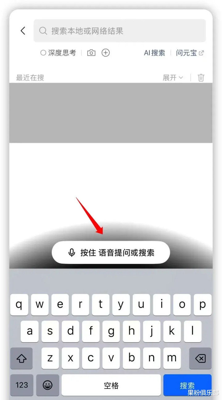 据用户反馈,在该界面底部,新增了一个「按住语音提问或搜索」的新选项。