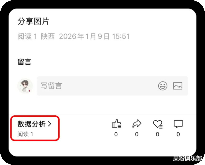 以公众号管理者的身份进入文章时,可以在底部看到新增的「数据分析」选项。