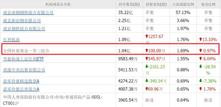 三季度,社保基金一零三组合再加仓100万股,合计持有1.04亿股,位列第五大流通股东。